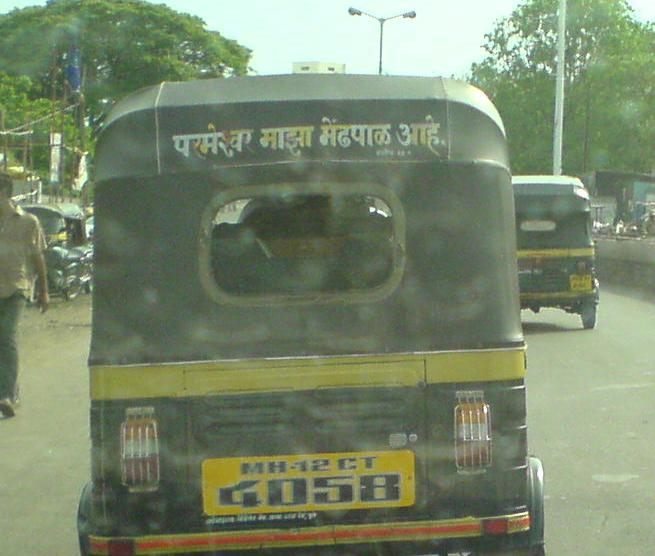 स्तो ! झकास अरे स्पष्ट दिसत आहेत ना ओळी 'परमेश्वर माझा मेंढपाळ आहे." आणि त्याखालील लहान अक्षरे म्हणजे "स्तोत्र २३ १ " त्याच्या रिक्षाच्या नंबरमधे मात्र 'मेंढी' (मटक्यातली) नसावी . 'जाणकार' खुलासा करतील काय