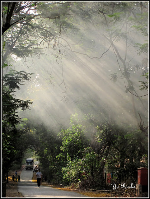 वाट धुक्याची नव्हती.. बाजूला जाळ केलेल्या धुराची होती.. पण सूर्यकिरणांनी रंगत निर्माण केली नि साहाजिकच आमचे क्लिकींग सुरु झाले.. जिप्सी नि आशुचँप आपापले लेन्स लावून सज्ज झाले..
