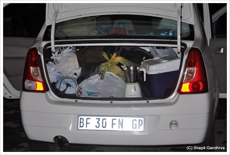 जोहनसबर्ग ते मेलेलेन प्रवेशद्वार हे एकुण अंतर ४२८ कि.मी. म्हणजे सधारण ६ तासांचा प्रवास. सकाळी ८ वाजता प्रवेश करायचा म्हणजे पहाटे (?) २ वाजता प्रवास सुरु करावा लागणार. खरं तर नवखा देश, अपरिचीत रस्ते आणि सोबत कोण तर बायको आणि १० महिन्याचं पिल्लु या परीस्थीतीत रात्रीचा प्रवास करणे म्हणजे मोठी रीस्क होती. पण इलाज नव्हता. हातात असलेल्या वेळेचा पुरेपुर उपयोग करायचा तर रात्रीचा प्रवास अपरिहार्य होता. समजावुन सांगितल्यावर बायकोला पण ते पटलं.
