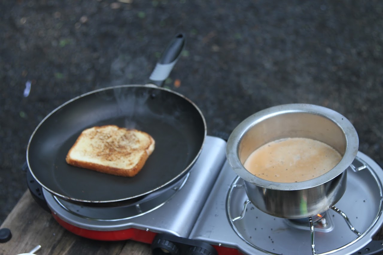 शुक्रवारच्या रात्री मुक्कामाला गेलो. रात्री गेल्यावर केबीनमधे सामान नीट लावले. बाहेर जरासं भुरभुरत होतं म्हणून त्या रात्री कॅम्पफायरभोवती बसायचा मोह टाळला. पण दुसरे दिवशी सकाळी छान उजाडले होते. लगेच शेकोटी भोवती येउन बसलो.