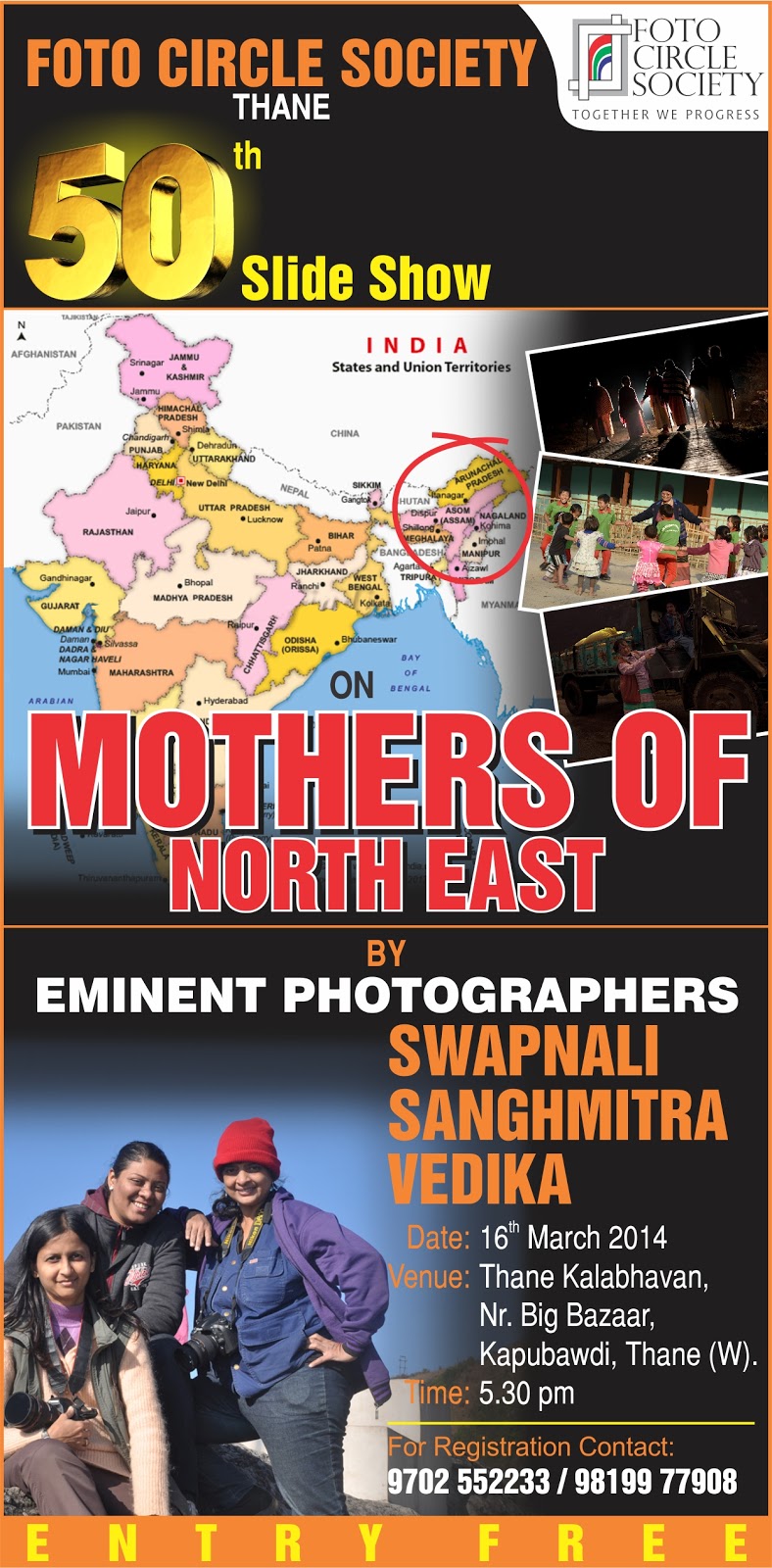 फोटो सर्कल सोसायटीच्या 'विद्युल्लता' या जागतिक महिला दिनानिमित्त भरवलेल्या प्रदर्शनासाठी संस्थेच्या तीन महिला सदस्य फोटोग्राफर्स स्वप्नाली मठकर, संघमित्रा बेंडखळे आणी वेदिका भार्गवे या पूर्वांचलातल्या असम, मेघालय, अरुणाचल प्रदेश आणि मणीपूर या चार राज्यात प्रवास करून तेथील चौदा स्त्रीयांना भेटल्या आणि त्यांच्या कार्याचे प्रकाशचित्रण केले. पूर्वांचलातल्या त्या चौदा महिलांच्या कार्याबद्दलची माहिती प्रकाशचित्रे स्वरूपात या स्लाईडशो मध्ये दिली जाणार आहे.