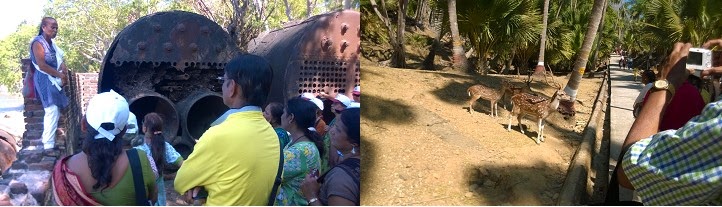 बेटावर अरुंधती राव नावाची एक खासगी मार्गदर्शक आहे. ती माफक दरात, शुल्क घेऊन, पर्यटकांचे प्रबोधन करत असते. मात्र तिची खासियत ही आहे की ती, खार, हरणे, ससे, मोर इत्यादिकांना त्यांच्या नावाने हाका मारते. ते लोक येतात. ती मग सोबत आणलेले ब्रेड त्यांना खायला देते. हे हरीण बदमाश आहे. लहान मुलांना मारेल. सांभाळा. ते हरीण आंधळे आहे. काही करणार नाही. अशा माहित्याही देत असते. प्रवासी तिच्या व्याख्यानांवर खूश असतात. त्या प्राण्यांसोबत आपापली प्रकाशचित्रे काढून घेत असतात. तेही सुखाने प्रकाशचित्रे काढू देत असतात. अरुंधती रावने ओढणीत बांधून घेतलेला जखमी ससा आणि तिने बोलावल्यावर धाऊन आलेली हरणे.