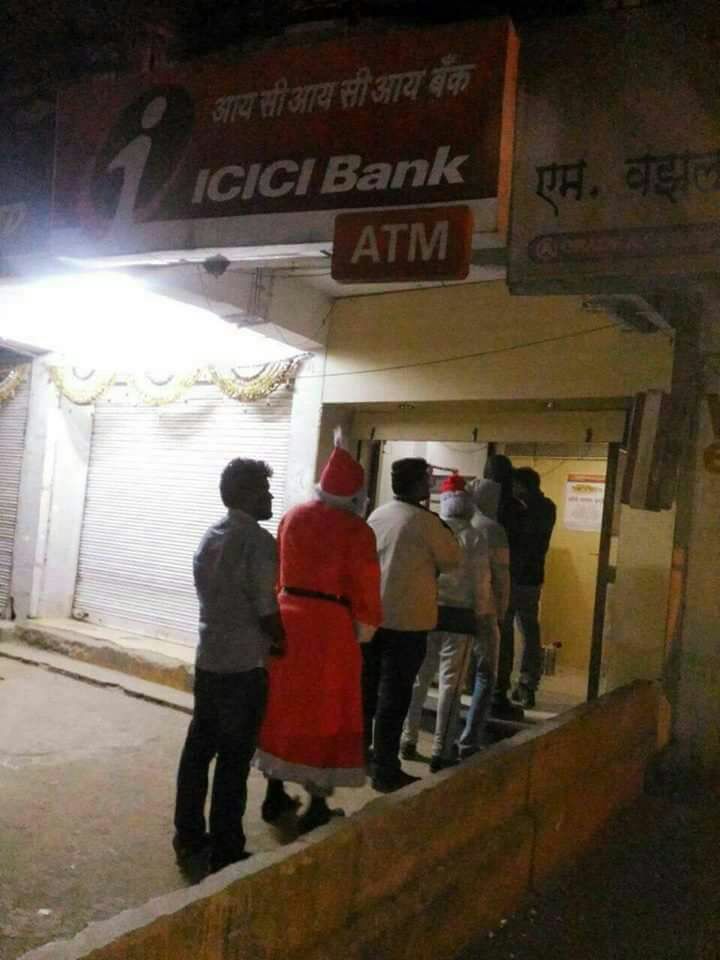 Santa Claus standing in an ATM queue to withdraw money in order to buy Gifts for children.(2016)