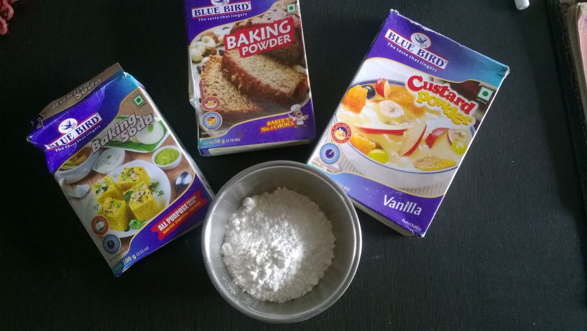 मैदा, कस्टर्ड पावडर, बेकिंग सोडा ,बेकिंग पावडर
