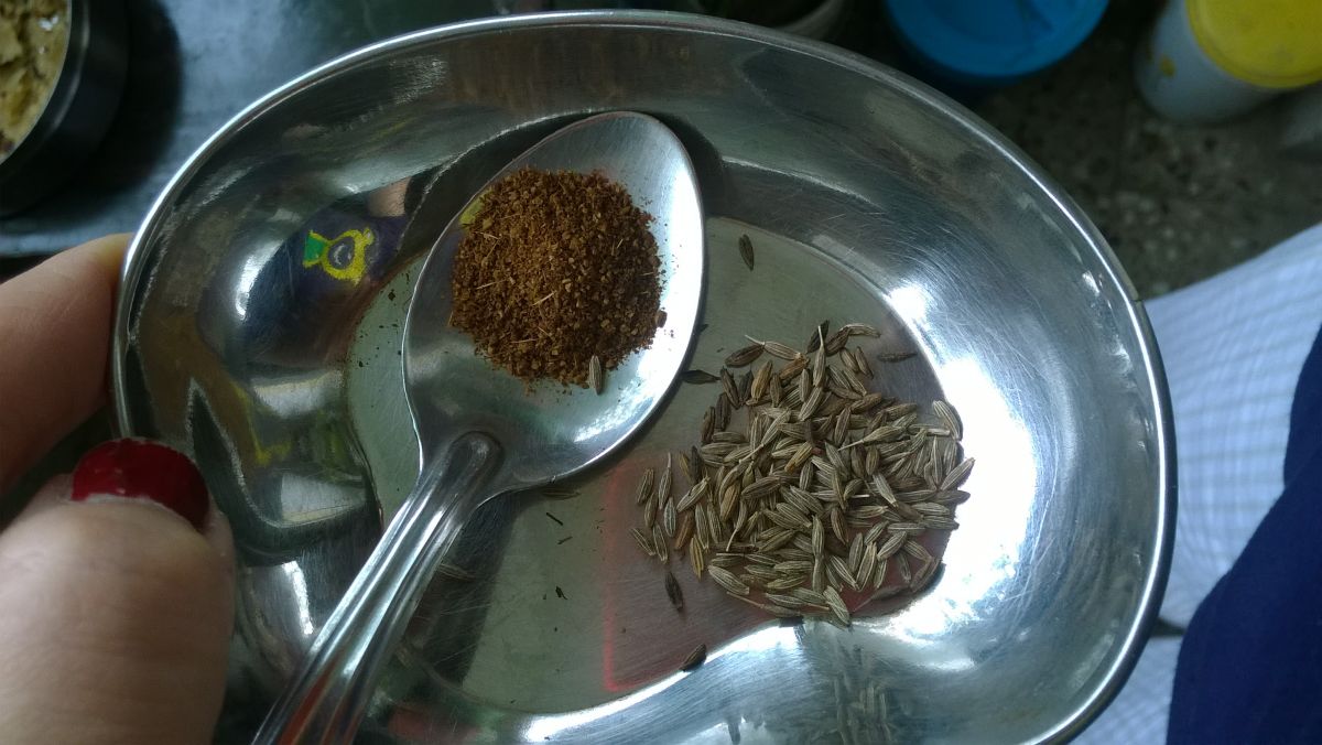(१) 2 मोठे चमचे बटर , 3 छोटे चमचे दळलेली साखर फेसून घेणे ( पांढरा रंग येतो ) व 1/4 चमचा शेकून घेतलेली जिरेपूड घालून पुन्हा फेसून घेणे.