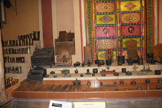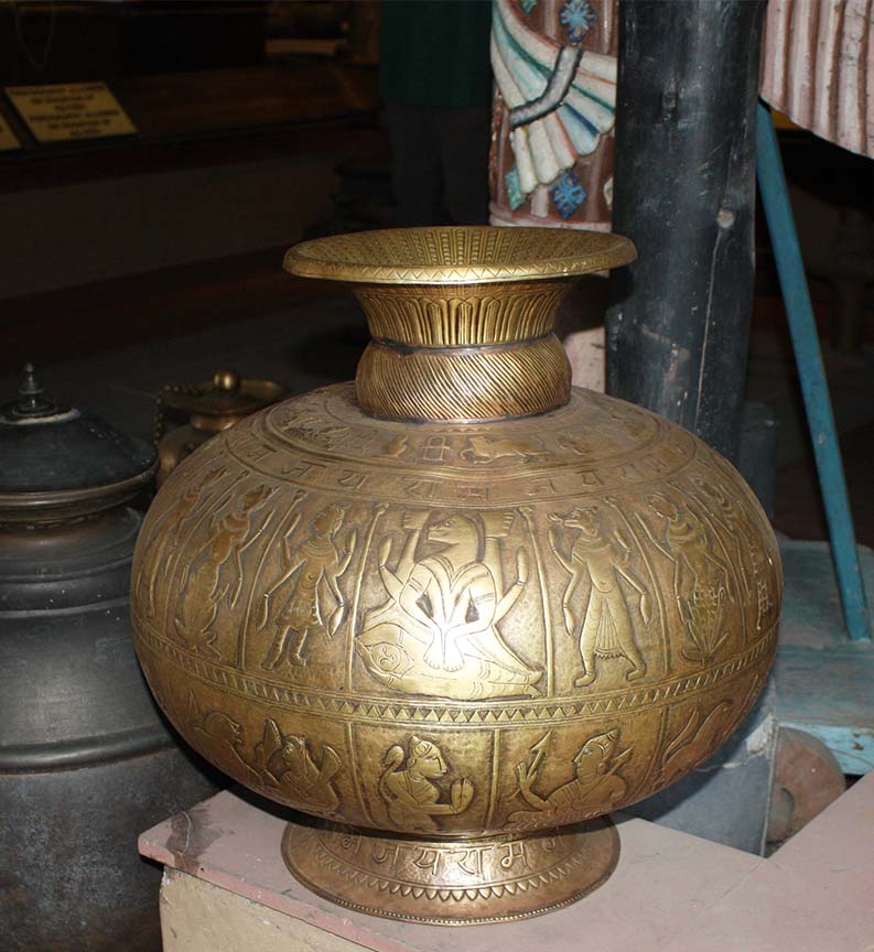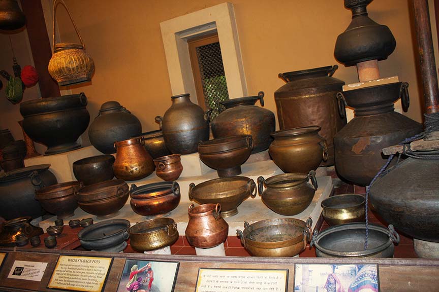 भारतीय पद्धतीचे जुने कुकर, पानाचे डबे (एक चक्क मोराच्या आकारातही), तबकं (ट्रे), चांदणीच्या आकाराच्या बैठकी, मुर्त्या घडवलेला मोठा पितळी घडा, सुंदर रंगकाम करून भाजलेली भांडी, पुरुषभर उंचीचा लोखंडी बाळकृष्ण,...