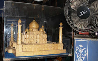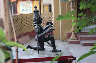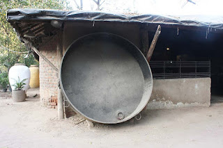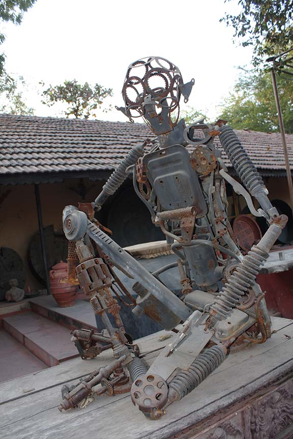 अन घराच्या भिंती एव्हढी मोठी पसरट कढईही दिसेल. अन सहा फुटी वॉचमन इतका अन नंतर त्याहूनही मोठा जवळजवळ सात फुटी रांजणही. अन जुन्या मोड्क्या यंत्रांपासून तयार केलेला यंत्र मानवही !
