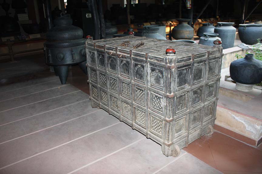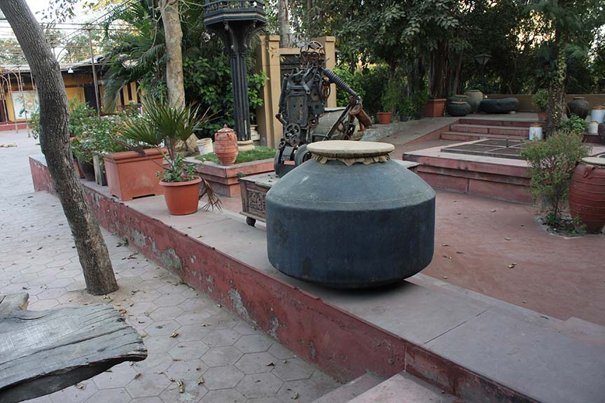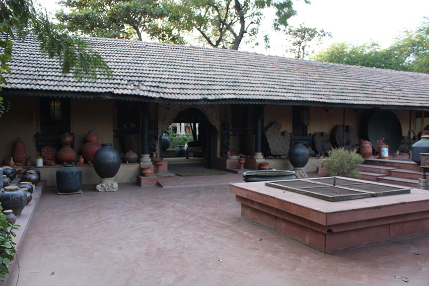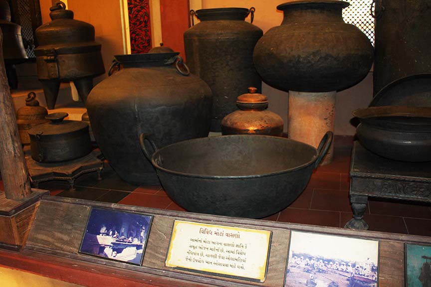 तर हे आहे अहमदाबाद येथील भांड्याकुंड्यांचं म्युझियम. इटुकपिटुक गडव्यापासून भल्या मोठ्या तांब्यापर्यंत, कातरी, सुपारी फोडायच्या अडकित्यापासून माणूस झोपू शकेल इतक्या कढई पर्यंत. पुरुषभर उंचीच्या रांजणापासून तीन पुरुष मावू शकतील अशा पेटाऱ्यासह.