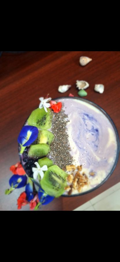 सजावट आणी फोटोसाठी बोल मध्ये केले. ग्लासमध्ये चिया सीड्स आणी ड्रायफ्रुट्स स्मुदी मध्ये मिक्स करून वरती हवे ते फ्रुट्स घालून घेता येईल.